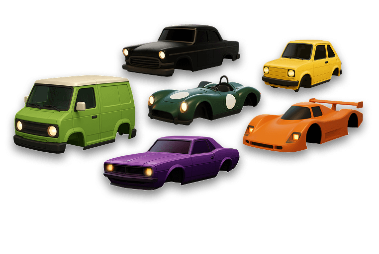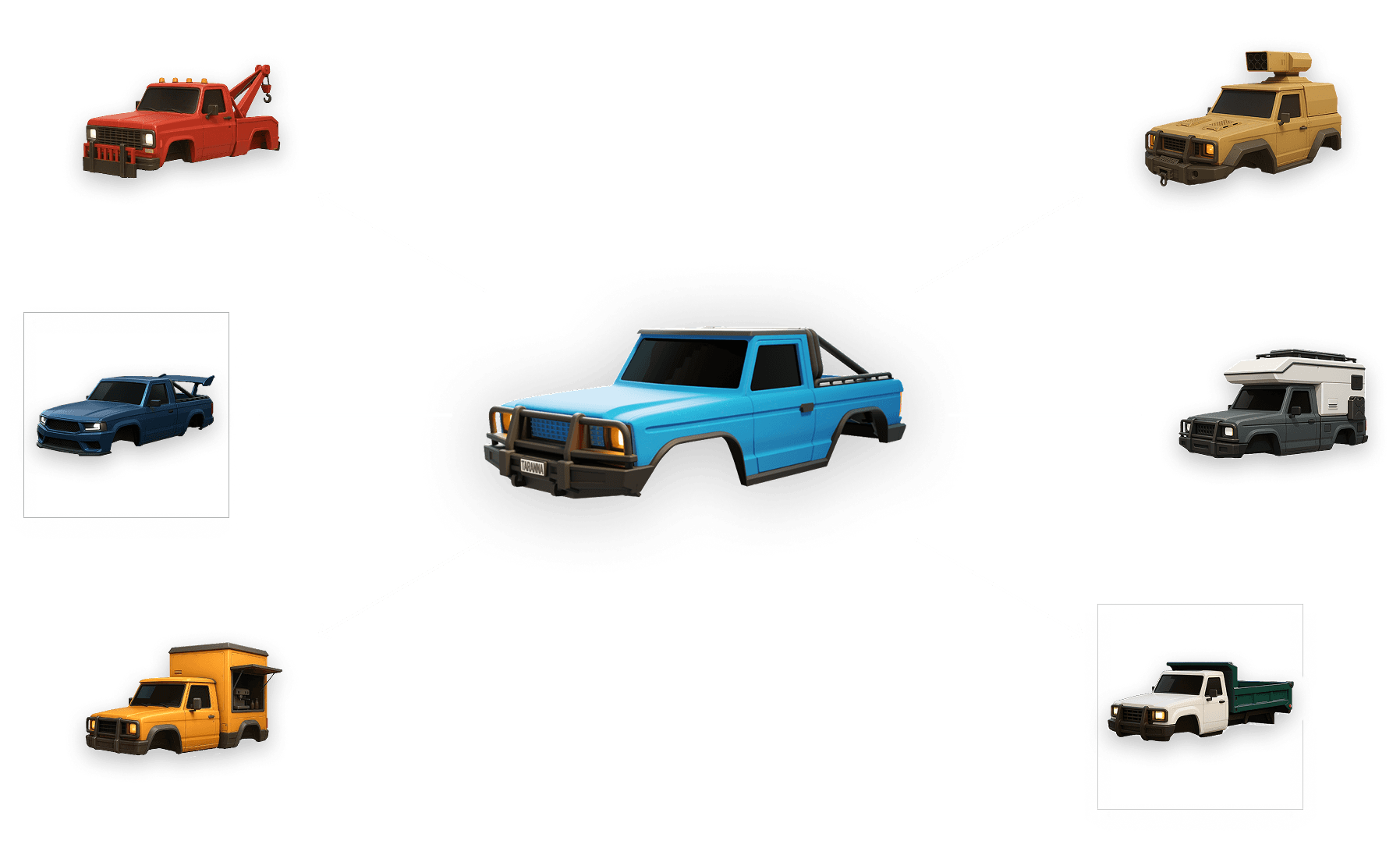 The Body Model defines the vehicle type (pickup, van, racer, etc.) and the layout of major parts (the cabin, hood, bed..), and overall silhouette.