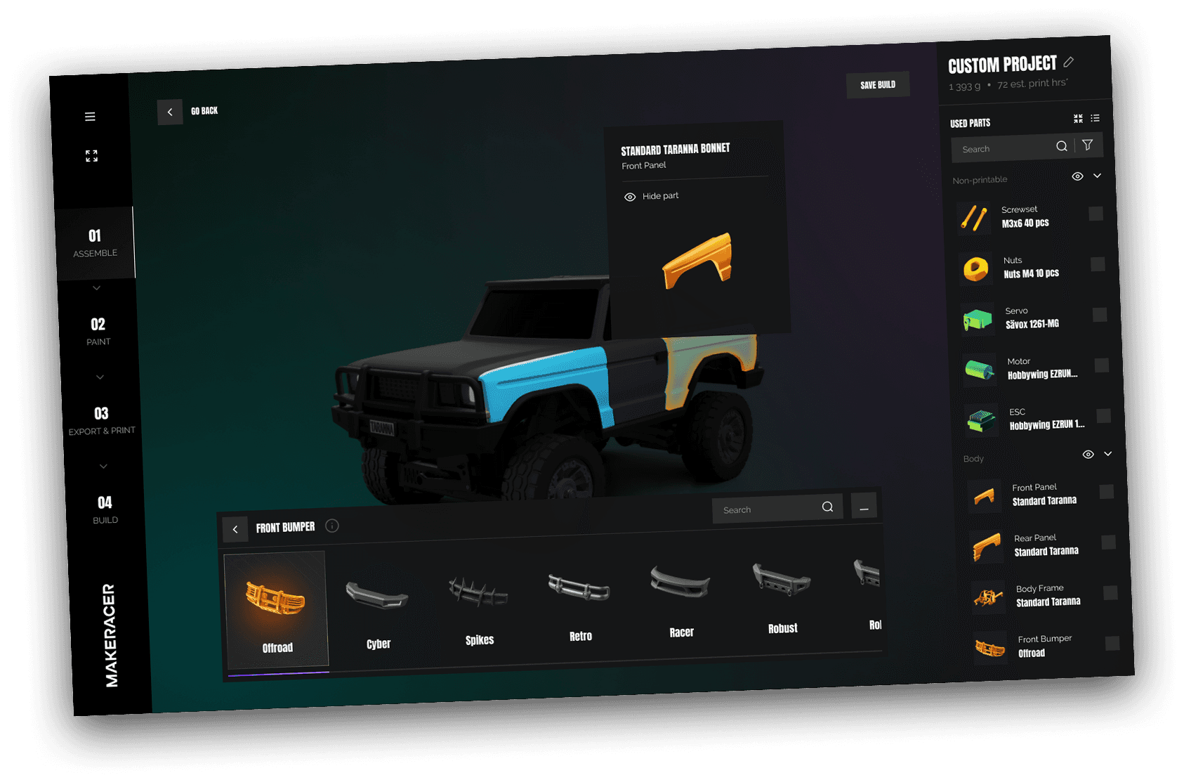 Now the real fun start from here, because in the 2nd step, Assembly, you'll pick specific parts for your car.