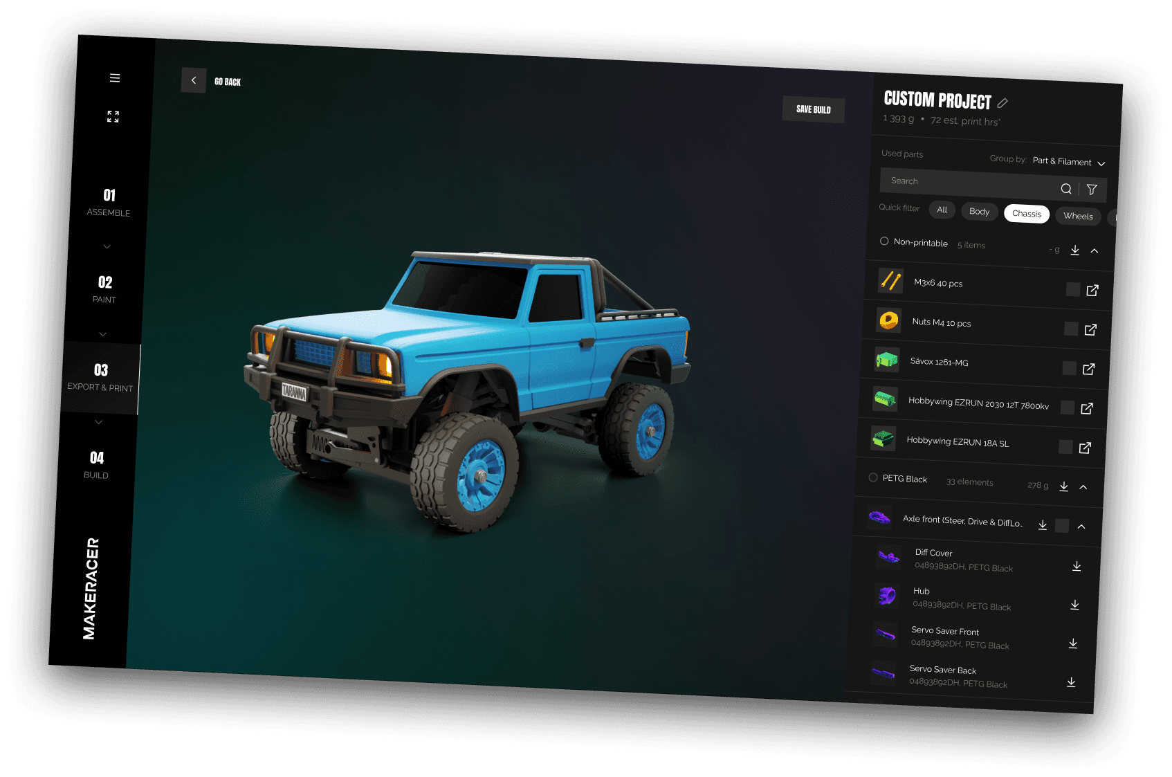 You do a final check to make sure everything looks right, then download all the print-ready data. Neatly sorted by filament.